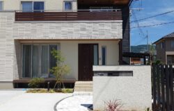駐車場も曲線を描く自然石の乱張りにしました。ナチュラルなデザインの外構が完成しました。